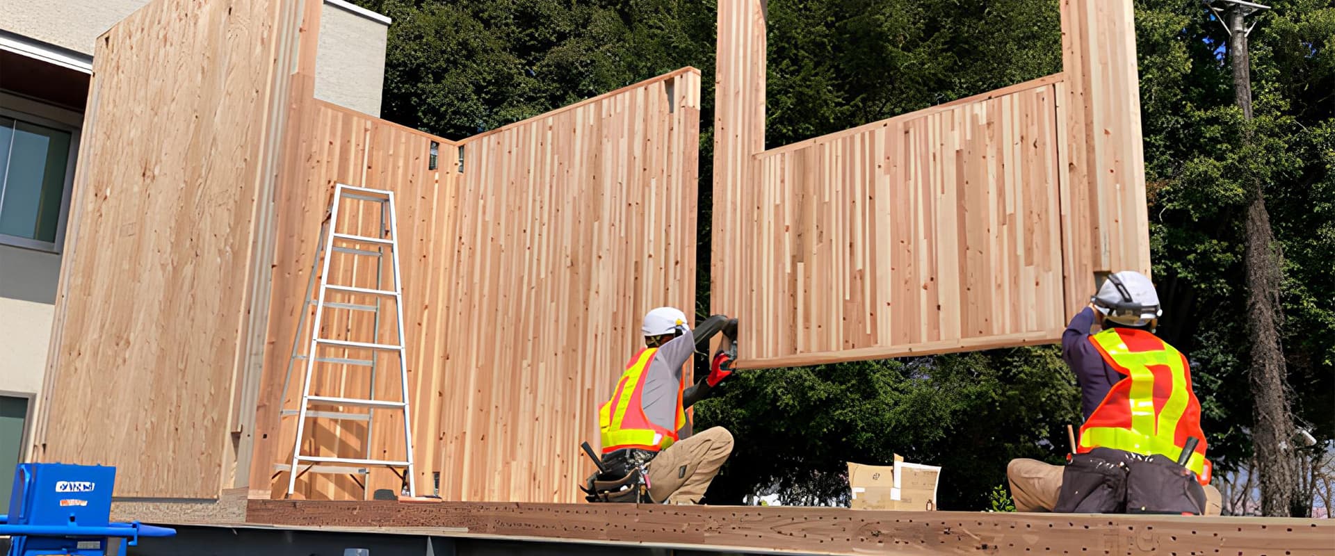 私たちは持続可能で高品質な建築資材の提供を目指し、新しい木製パネルシステムを考案。他企業や大学との共同研究を通じて開発を進め、独自技術として特許を取得しました。私たちの強みである柔軟な発想と確かな技術力で、これからの建築に新たな価値を提供してまいります。
